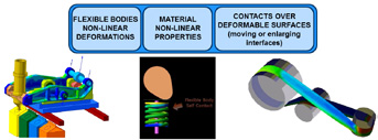 Despite being very well performing, RFlex technology has intrinsic limits that make it unusable in several applications. First, the linear behavior is acceptable for small deformations only. Second, it is almost impossible to properly describe the effects of contacts through a master node interface.